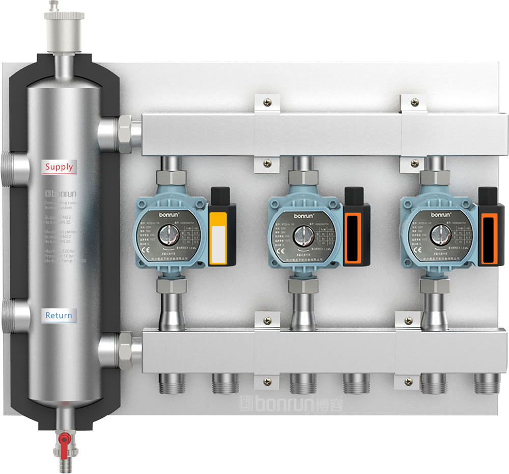 在大戶(hù)型采暖中容易出現(xiàn)水流量不匹配現(xiàn)象。利用博容去耦罐集成系統(tǒng)可以解決此問(wèn)題,打造出一套舒適、穩(wěn)定的采暖系統(tǒng)。推薦別墅,復(fù)式樓等大面積采暖使用。 每路帶實(shí)鋪面積不超150平米.